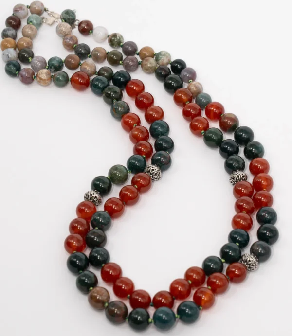 عقد أنيق من الفضة العربى مُزيّن بحجر العقيق الطبيعي. قطعة خالدة تضيف لمظهرك لمسة من الرقي والجمال الطبيعي في أي إطلالة.